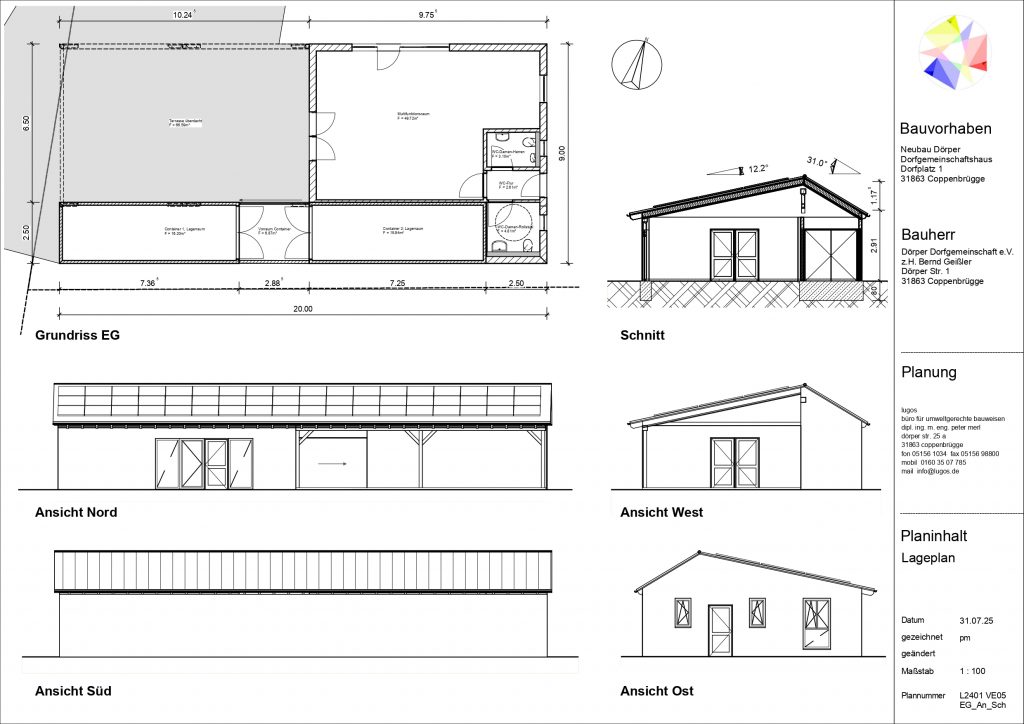 Ein erster Schritt zur Verbesserung wurde bereits 2024 umgesetzt: Ein neuer, fester Stromanschluss wurde installiert – vollständig finanziert durch das Dorfentwicklungsprogramm und die Gemeinde. Parallel dazu begann die Dorfgemeinschaft, Möglichkeiten für ein festes Toilettengebäude mit Lager- und Multifunktionsraum zu prüfen. Eine erste Standortidee scheiterte an baurechtlichen Abstandsregelungen. Daraufhin entstand der Plan, das Gebäude in Verlängerung der bestehenden Container zu errichten.
